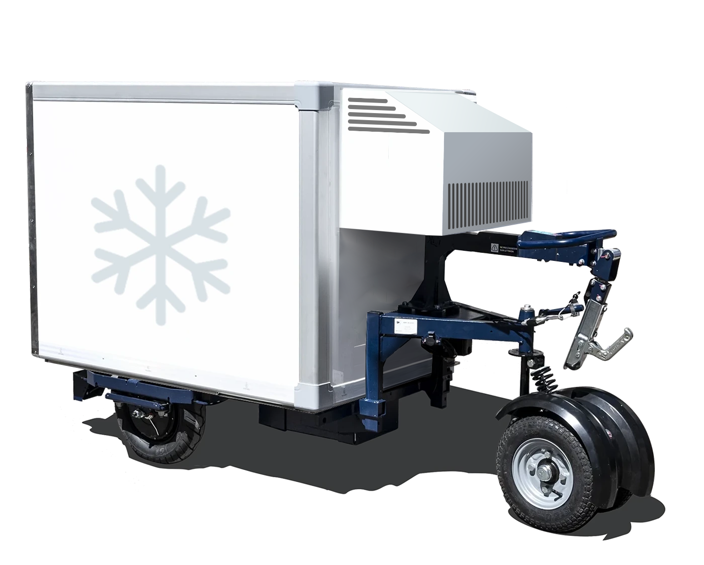 Notre modèle de remorque électrique frigorifique a été conçu en partenariat avec Gruau. Il permet un emport de 1180 l dont 1100 l dans un caisson hermétique en froid actif. Une solution de température dirigée pour toutes les activités nécessitant de conserver la chaîne du froid durant toute la durée du transport.